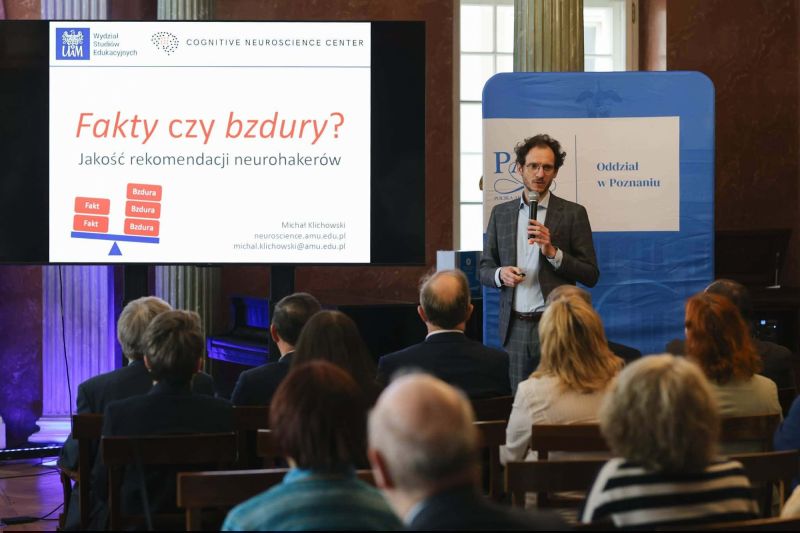 Zagadnienie ”Jakości ” w nauce przedstawił prof. UAM w Poznaniu - prof. dr hab. Michał Klichowski, kierownik Pracowni Badań nad Procesem Uczenia się. Wykład profesora: ”Fakty czy bzdury. Jakość rekomendacji neurohakerów ” mocno zainspirował uczestników inauguracyjnego spotkania, w tym naszych licealistów. Profesor opowiedział o jakości w kontekście badań nad uczeniem się, o neurotechnologiach oraz relacją człowieka ze sztuczną inteligencją, które dziś nie tylko wpływają na jakość poznania, ale też stawiają ważne pytania o granice oddziaływania i ryzyko manipulacji w świecie pełnym „ neuromitów”.
