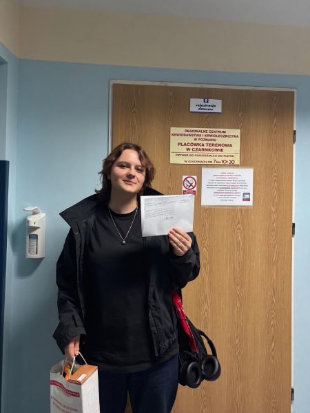 Uczniowie pełni podekscytowania po raz pierwszy oddali krew w Szpitalu Powiatowym w Czarnkowie. Tuż po donacji nosili w swoich sercach wielką satysfakcję, której nie ukrywali. Z wielką przyjemnością patrzyło się na ich radość, radość z pomagania.